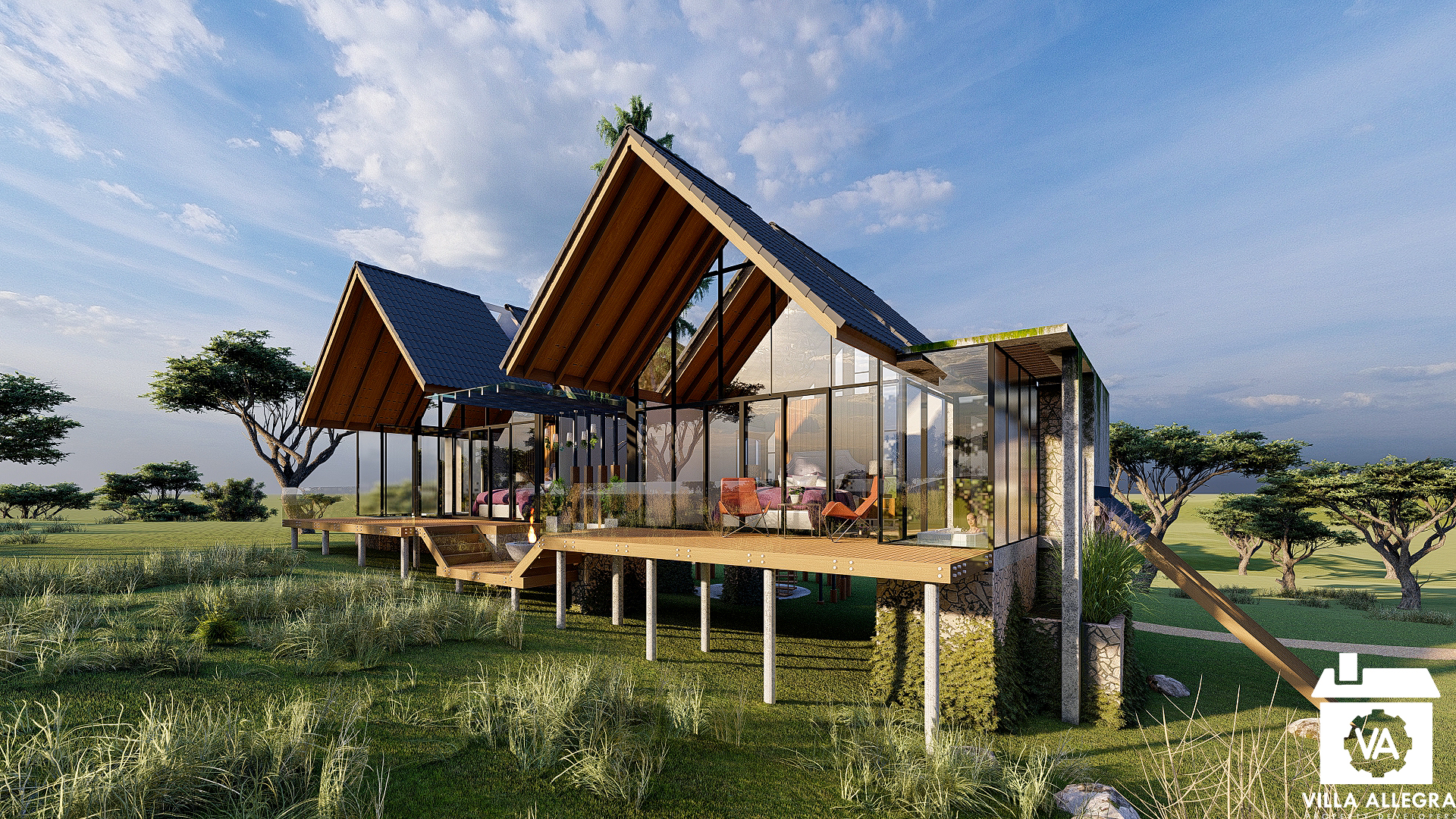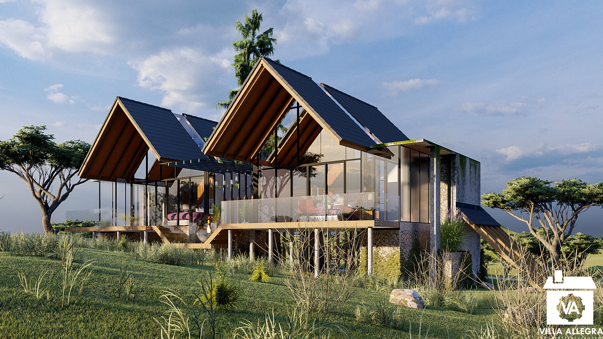 Nyika Solace is envisioned as a luxury wildlife resort cottage, inspired by the timeless simplicity of the A-frame form — a geometry born from nature’s own logic of shelter.